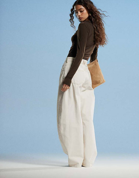 DESIGN high waisted barrel leg jeans in ecru