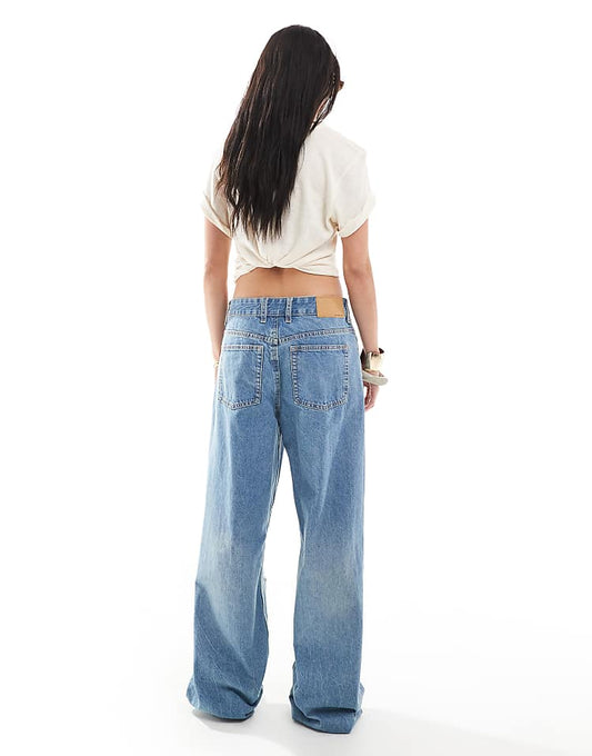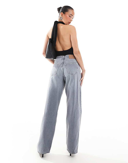 Weekday Ample low waist baggy fit jeans in washed grey
