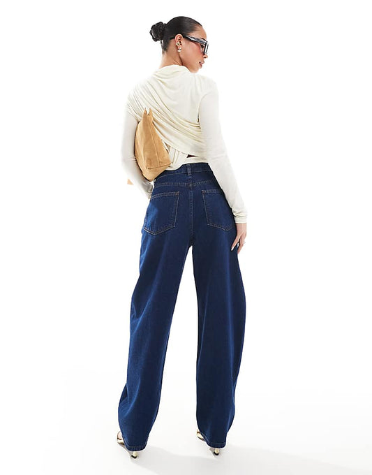 DESIGN barrel leg jeans in indigo